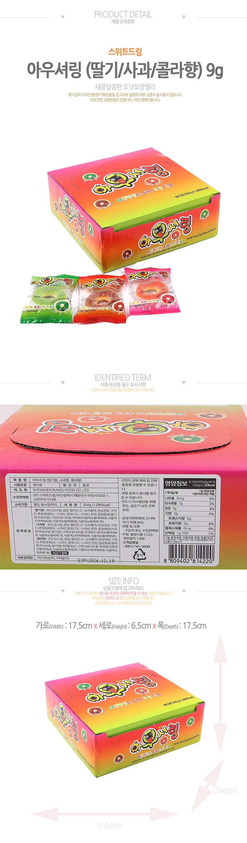 아우셔링[딸기향.사과향.콜라향](9g*36입)