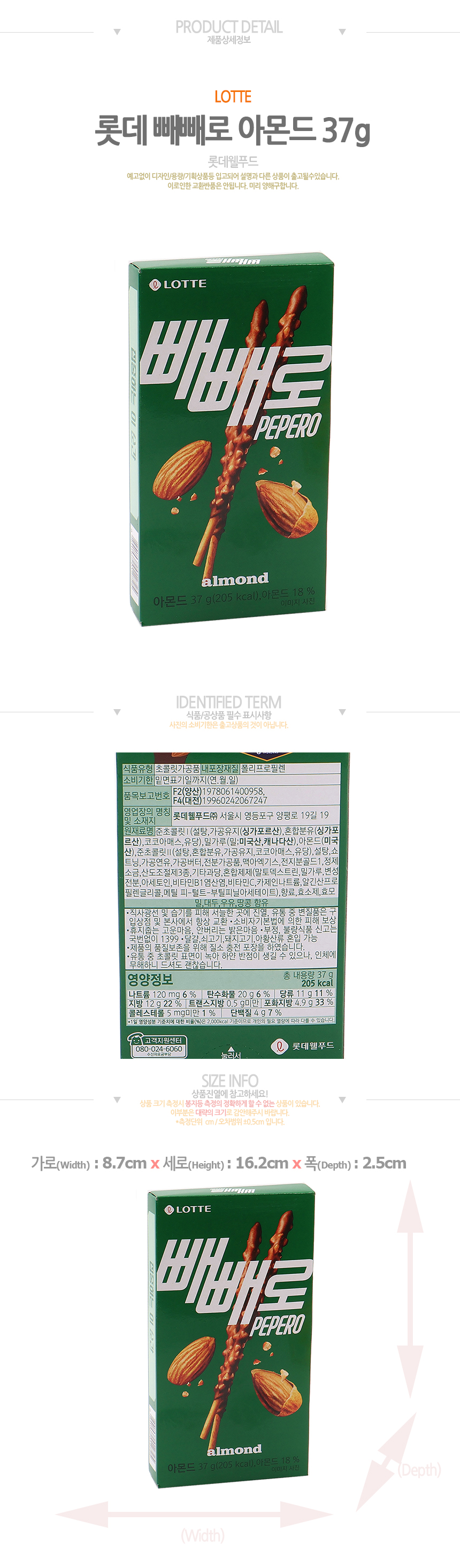 롯데 빼빼로 아몬드 (37g*40입)