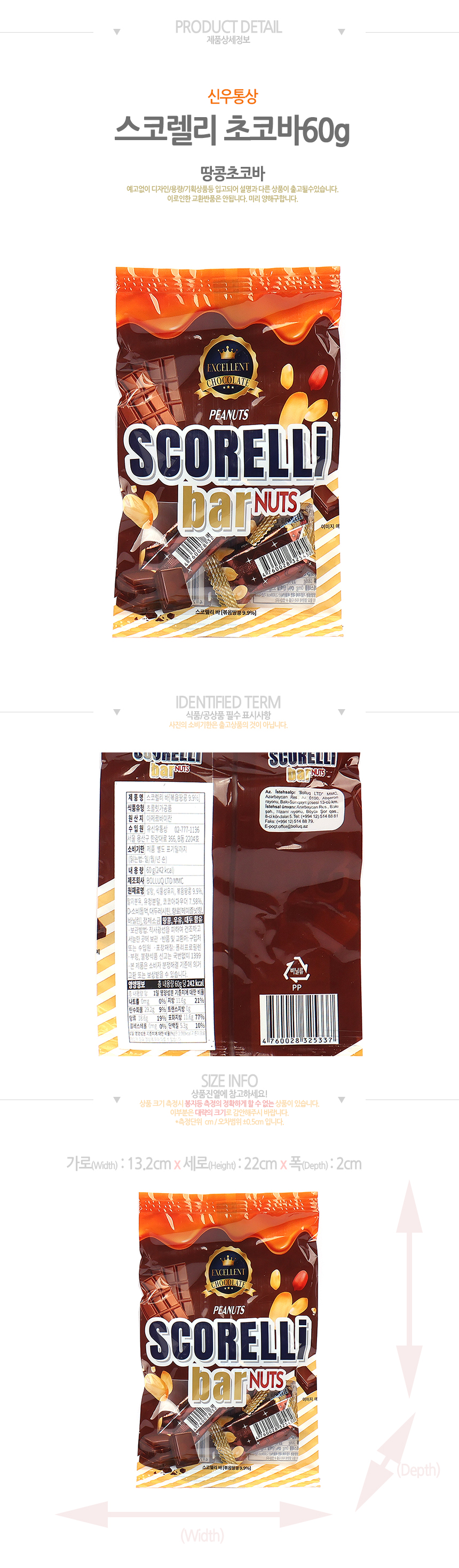 스코렐리 초코바(60g*1봉[1봉4입])